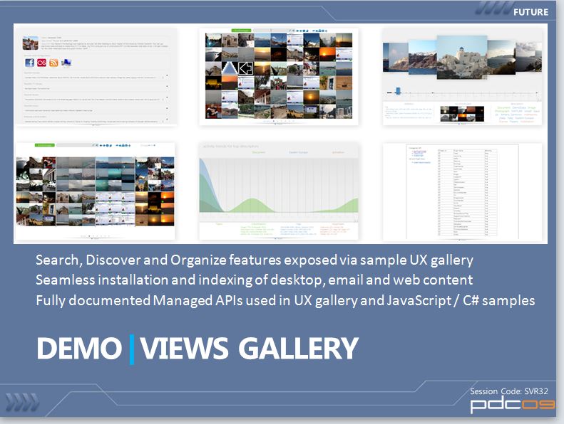 You can get the same experience that PDC attendees had, by watching the video of the presentation and demo here, or downloading the slides which accompanied the roll-out and live demo. The video itself is about 45 minutes long and features talk and demoing by Naveen Garg and Duncan Davenport of the MSE team.